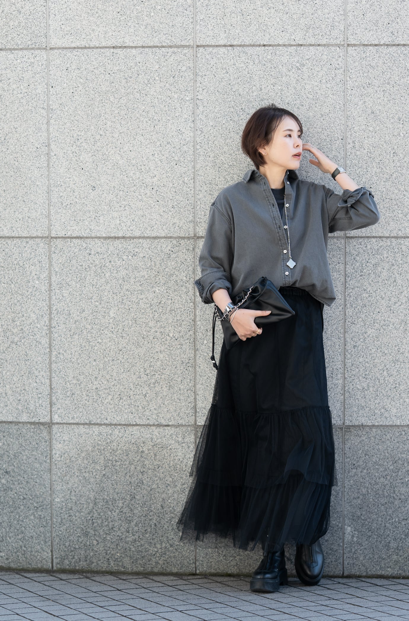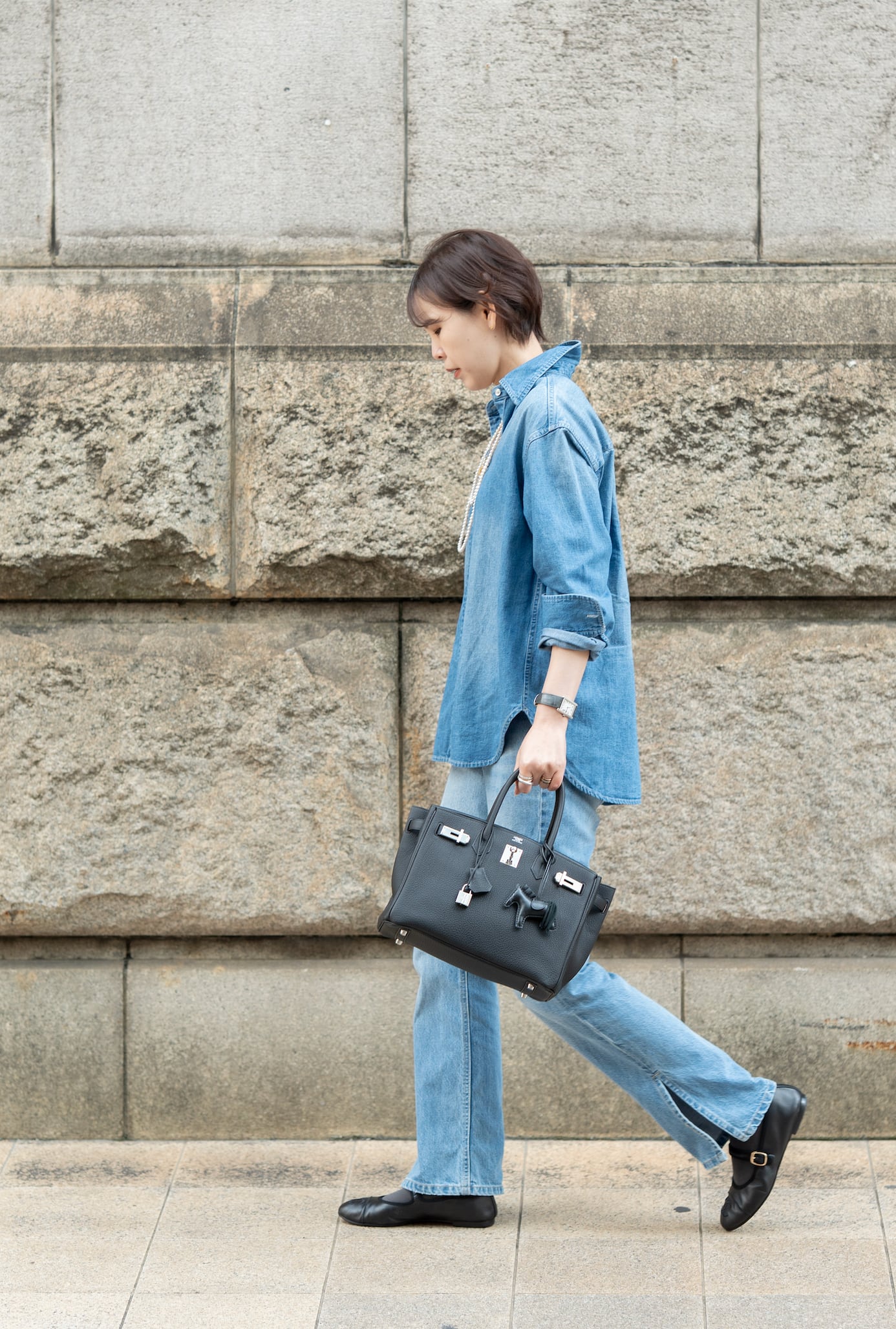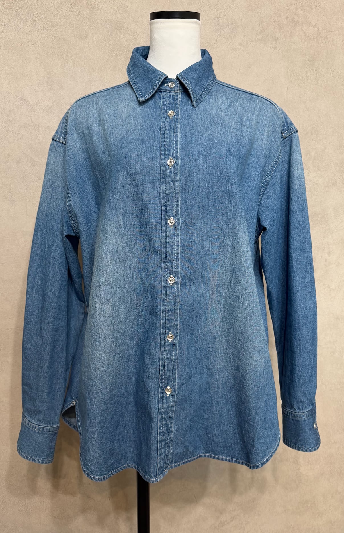 可愛らしさもありながら、凛とした女性【ジェーン・バーキン】のシャツスタイルをイメージしたオーバーサイズすぎないほどよいゆとりのデニムシャツです。