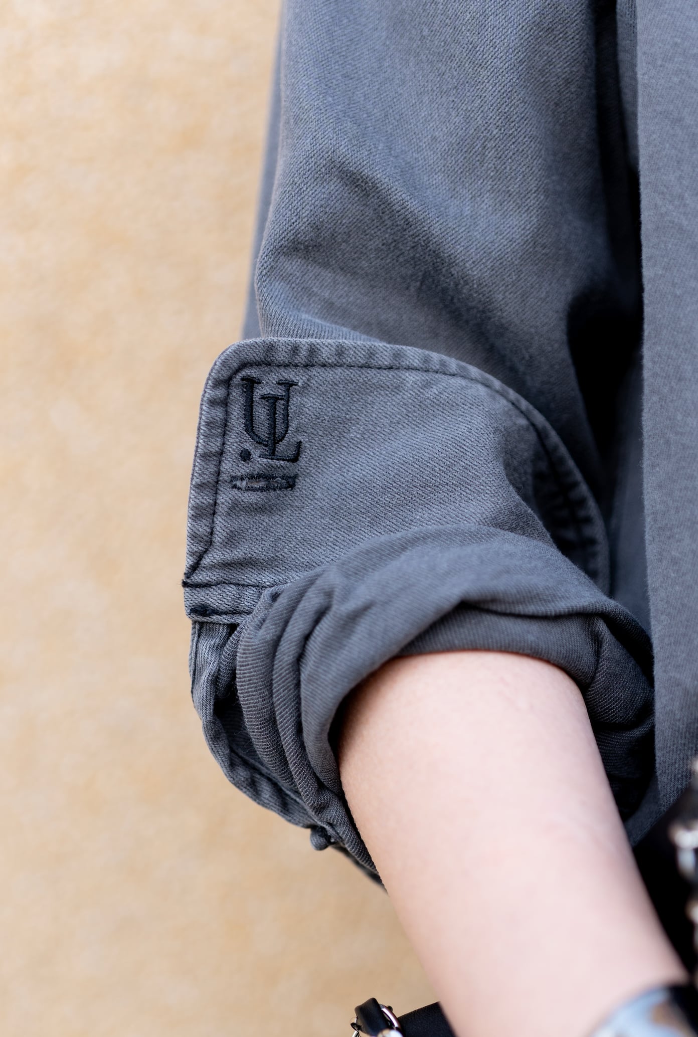 カフス裏にはブランドロゴ刺繍をいれて、袖をまくったときにちらりと見えるポイントに。